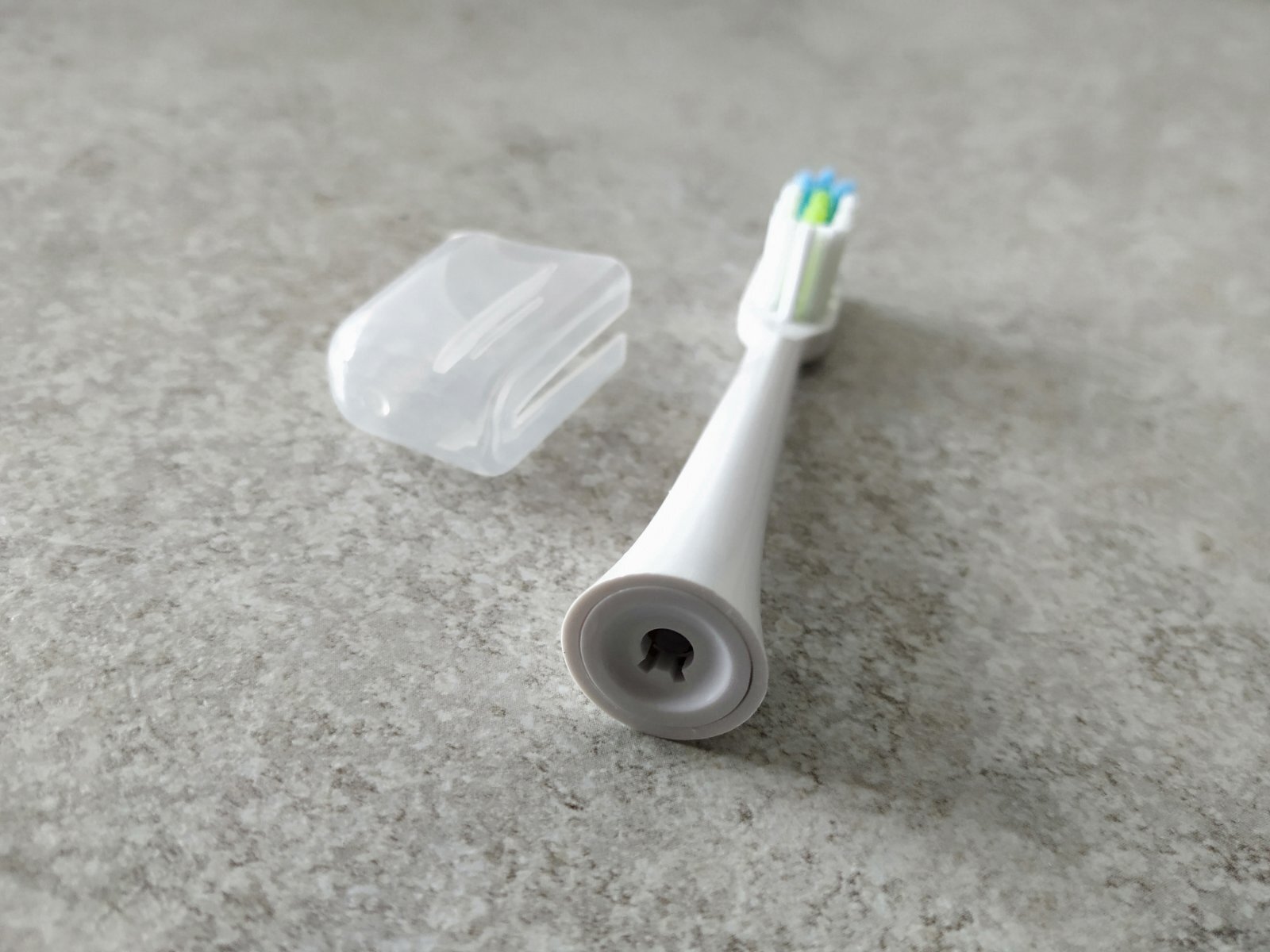 Сменные насадки имеют прямоугольную форму чистящей головки с плотными пучками щетины по краям. Данный подход позволяет улучшить качество чистки зубов, особенно в зубных щетках 3-го поколения.