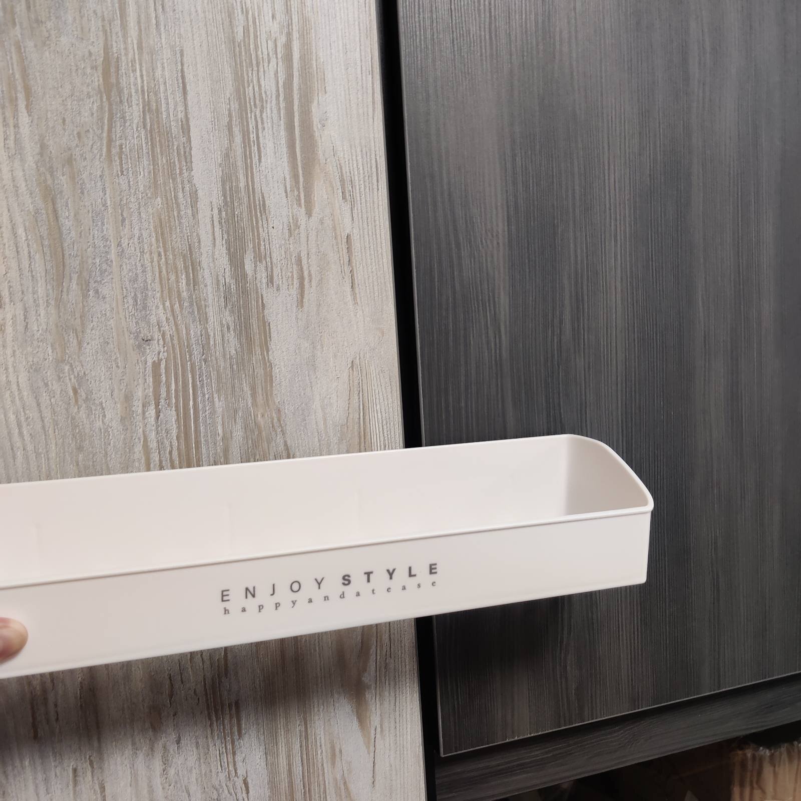 Настінна полиця із пластику NOOOTH (раніше JOSOGO) міцна і не боїться вологи. Надійне просте кріплення за допомогою спеціальних клейких панелей (без свердління). Пластик має зовнішню графітну текстуру, що робить поличку дуже стильною.