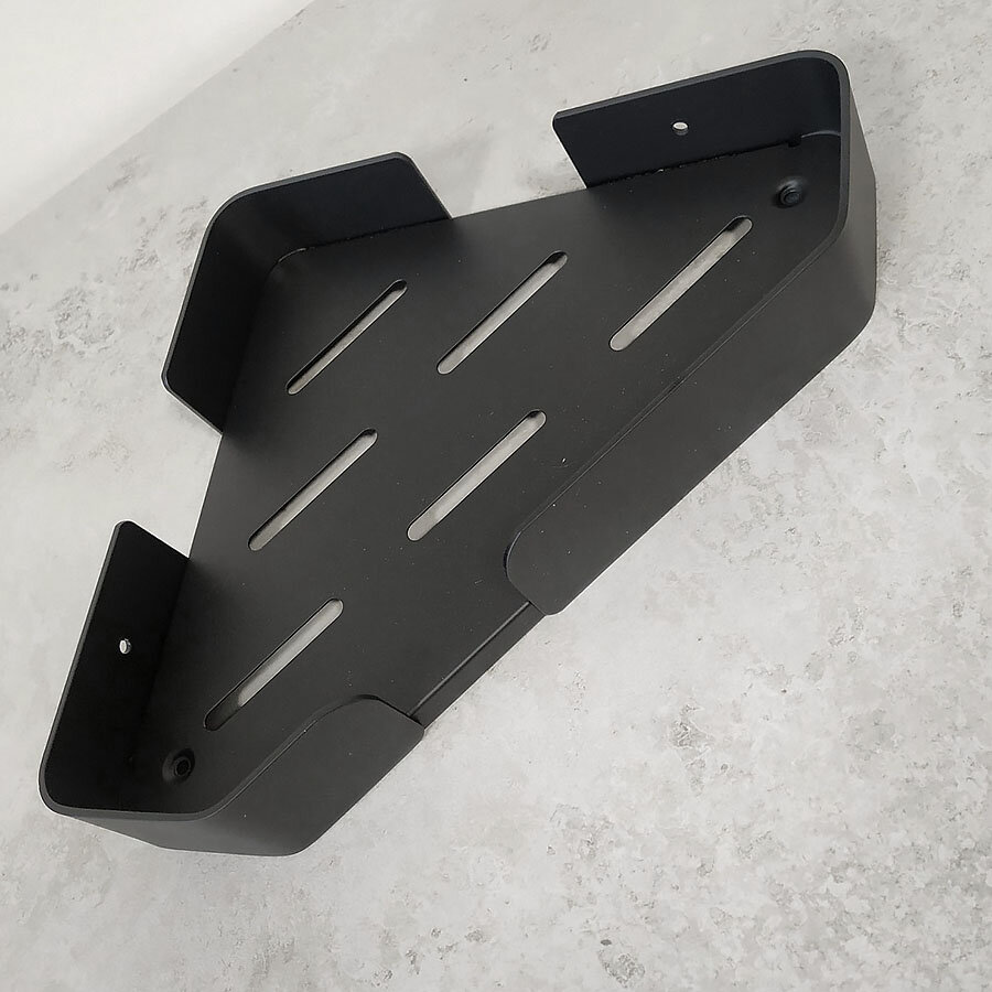 Полка для ванной изготовлена из алюминия, устойчива к воздействию влаги, не ржавеет. Полка имеет современный дизайн (модерн, лофт), гармонично сочетается с большинством дизайнерских решений при обустройстве ванной комнаты. Покрытие - прочный грунт + черная краска.