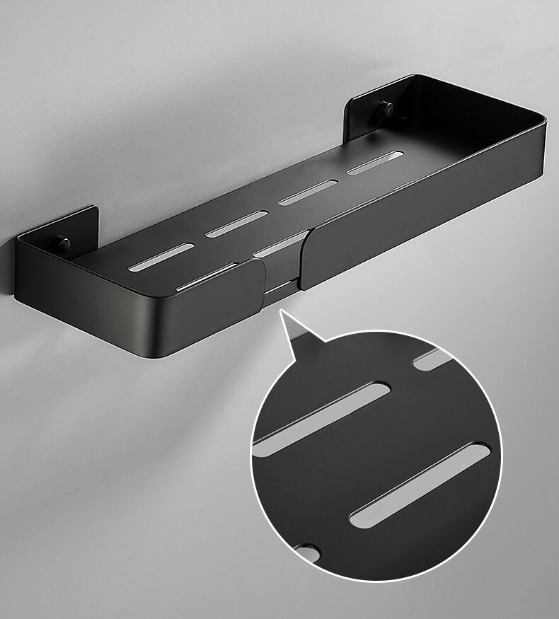Полиця для ванної виготовлена ​​з алюмінію, стійка до дії вологи, не іржавіє. Полиця має сучасний дизайн (модерн, лофт), що гармонійно поєднується з більшістю дизайнерських рішень при облаштуванні ванної кімнати. Покриття – міцний ґрунт + фарба.