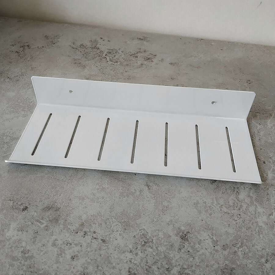 Полиця для ванної з алюмінію. Полиця виготовлена в стилі Лофт, що гармонійно поєднується з більшістю дизайнерських рішень при облаштуванні ванної кімнати. Дизайнерська лінійка полиць від IwConcept. Покриття - міцний ґрунт + біла глянсова фарба.