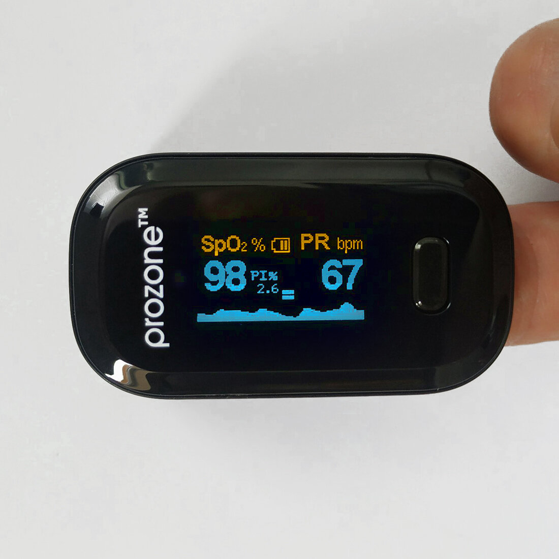 - Звичайний добрий пульсоксиметр вимірює 2 вимірювання на різній частоті. ProZone oClassic 2.0 робить додатковий 3-й калібрувальний вимір - Усуває вплив зовнішнього світла.