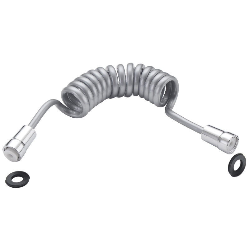Шланг для гігієнічного душу (бідетти) спіральної форми. Не займає багато місця, після витягування повертається до попереднього положення. Гайки підключення на 1/2 дюйми, виготовлені зі спеціального пластику. Є ущільнюючі прокладки.