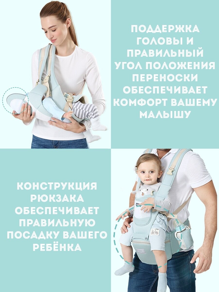 Ергономічний, м'який та зручний 4 положення для перенесення дитини: для немовлят, обличчям до батька, обличчям до світу, за спиною батька.