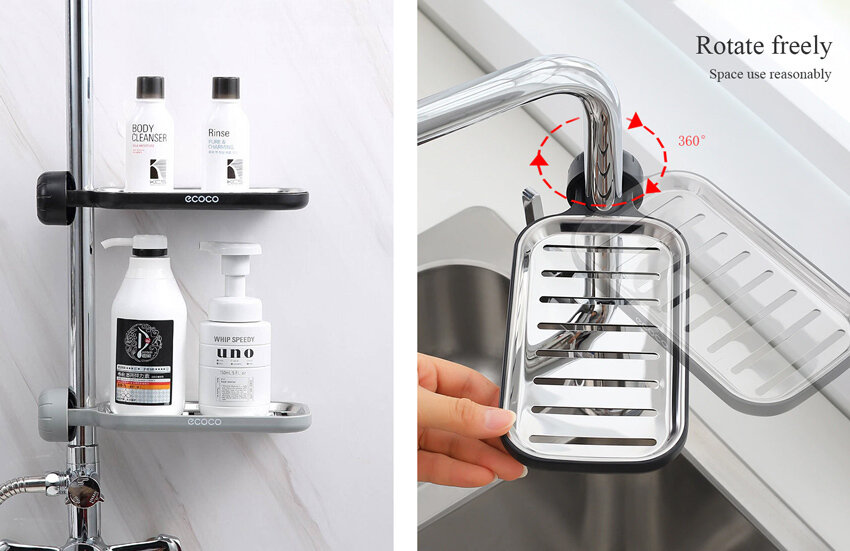 Полиця на душову штангу або змішувач - це відмінне рішення для організації простору навколо раковини або душової кабіни. Такий аксесуар буде ідеальним біля раковини для зберігання та просушування губок, миючих засобів. А також полиця знадобиться в душовій кабіні для мила, мочалок та інших дрібниць. Її кріплення не вимагає свердління або особливих навичок, потрібно просто закрутити утримувач у потрібному для Вас місці. Основа полиці виготовлена ​​із якісного ABS пластику.