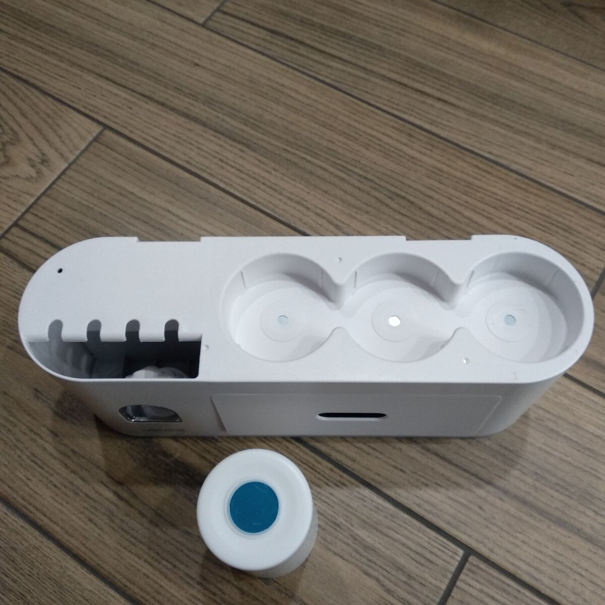 Дозатор зубної пасти працює без батарейок - від механічного натискання. Щоб отримати необхідну кількість пасти, потрібно піднести щітку до вікна дозатора і натиснути.