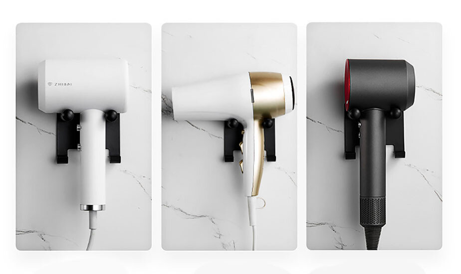 Універсальний тримач для фену у ванній кімнаті, виготовлений з алюмінію, не боїться корозії.