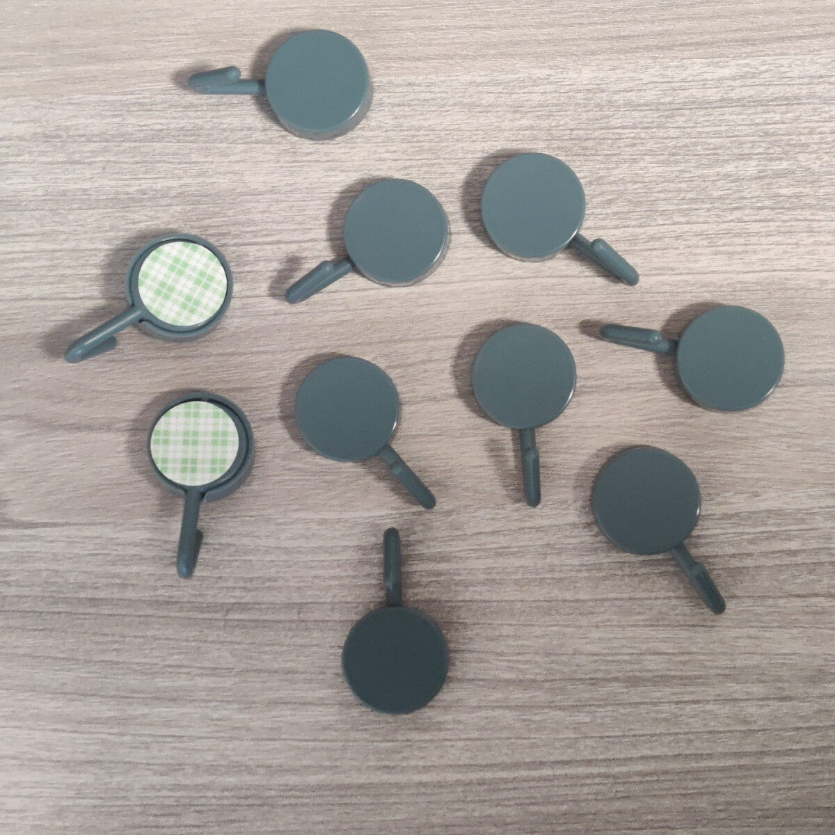 Гачки із пластику, клеяться до стіни на двосторонній скотч (у комплекті). Невеликі, стильні. Ціна вказана за 10 гачків.