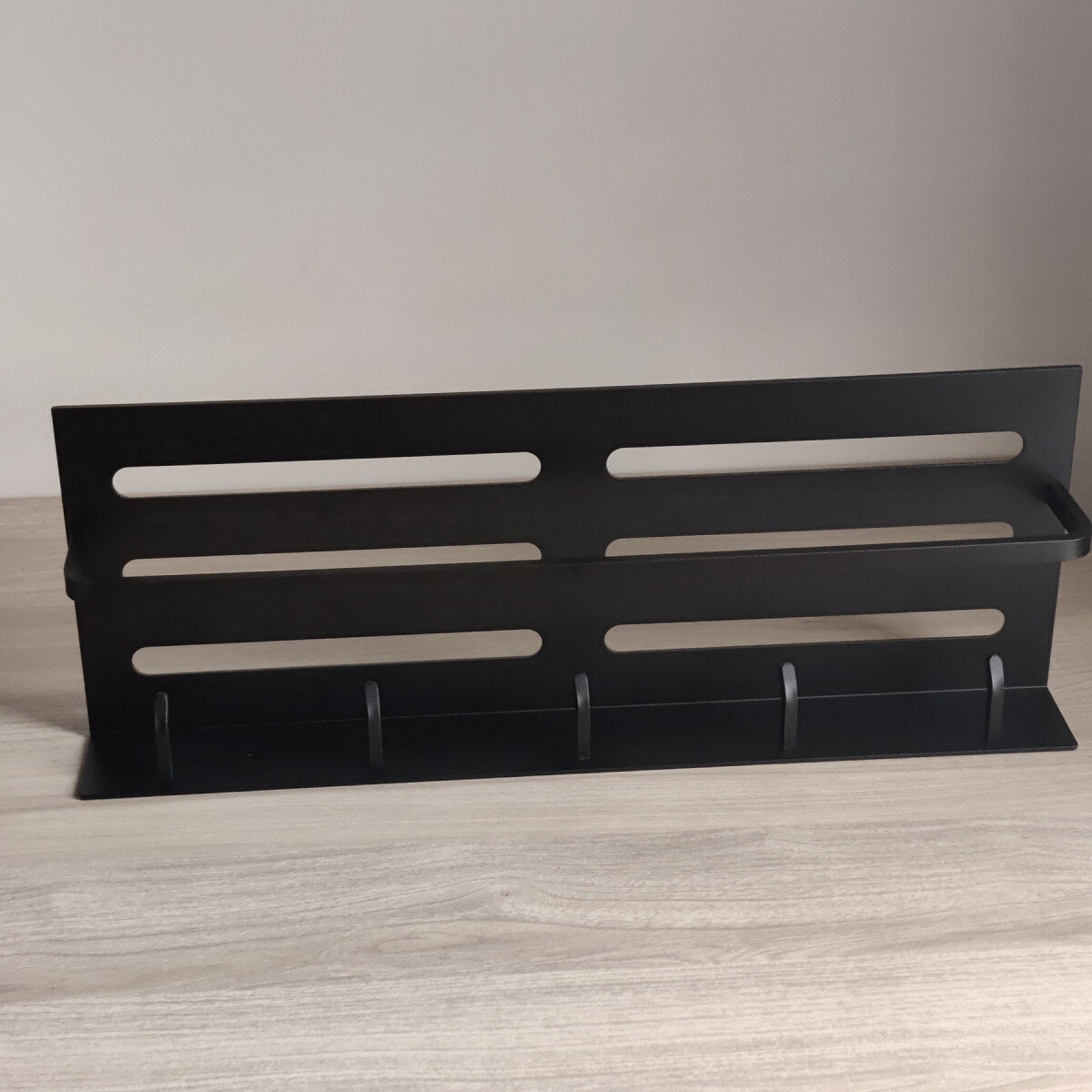Ця універсальна полка - не просто місце для зберігання рушників. Це багатофункціональне диво, яке підходить для різних предметів! Завдяки універсальній конструкції полиці ви можете зберігати все, що завгодно, від пляшок із шампунем до банних халатів. Вбудований тримач для рушників гарантує, що ваші рушники завжди будуть під рукою, а п'ять гачків ідеально підходять для підвішування мочалок та багато іншого.