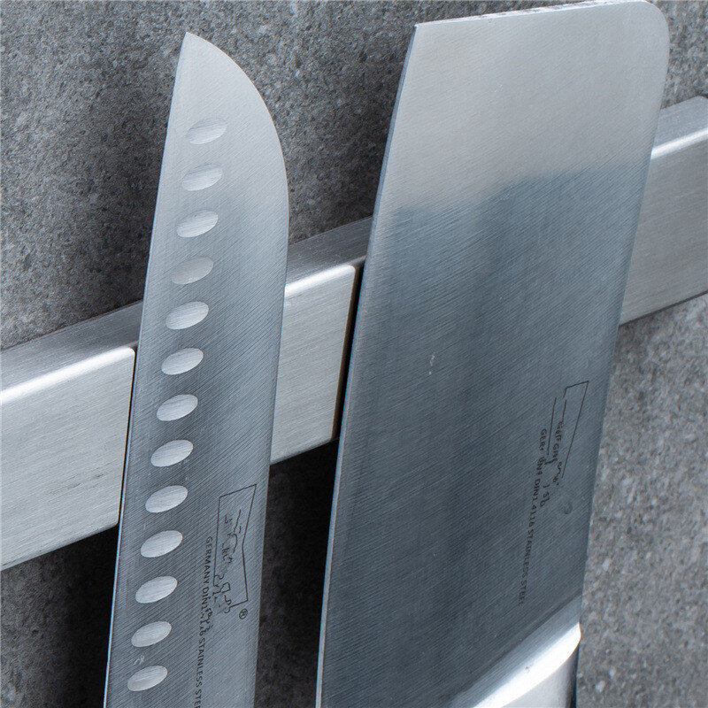 Магнітна планка – це зручний спосіб зберігання ножів чи інших металевих кухонних інструментів. Виконана з високоякісної нержавіючої сталі із сильними магнітами на всю довжину. Не впливає на якість ножів і не псує їх зовнішній вигляд, стійка до корозії та дії вологи.