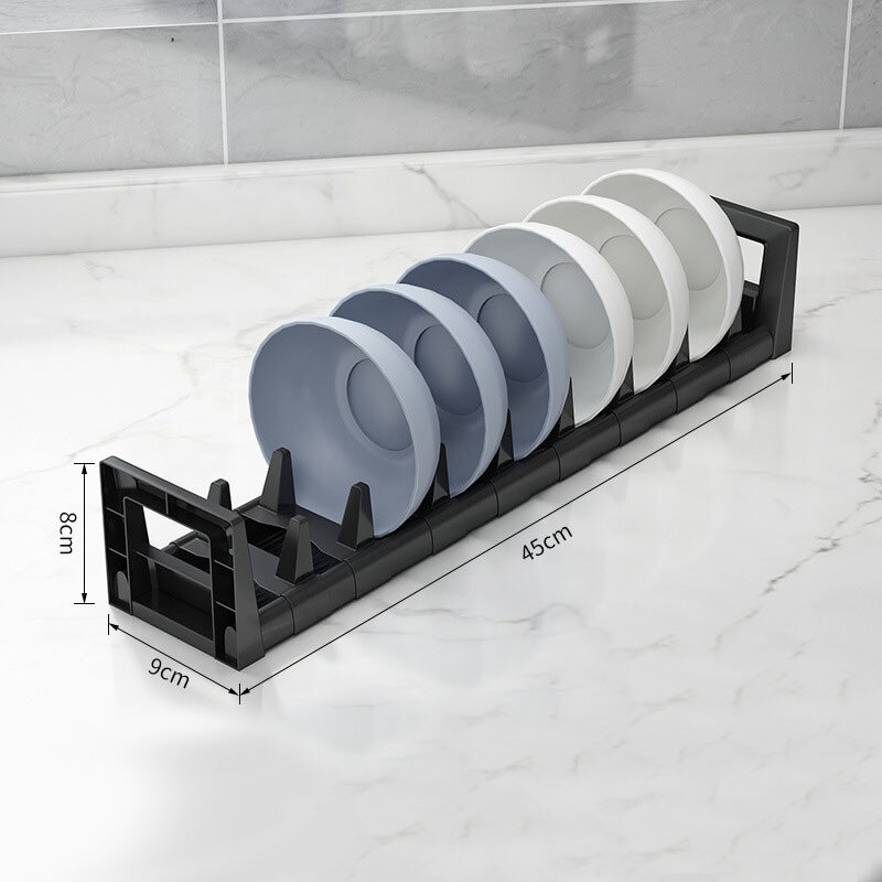 Сушіння для посуду з алюмінію та пластику. Чи не боїться корозії. Довжина 45 см. Установка на дно шафи або стіл. Ширина ячеєк регулюється.