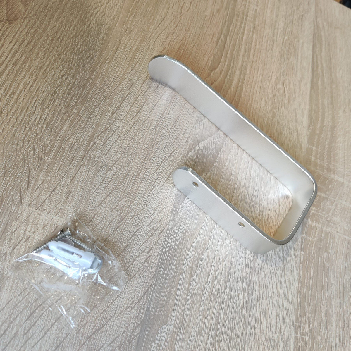 Тримач для туалетного паперу із алюмінію. Надійний та товстий (5 мм). Не боїться корозії. Надійне кріплення за допомогою шурупів чи клею (клей не йде в комплекті).