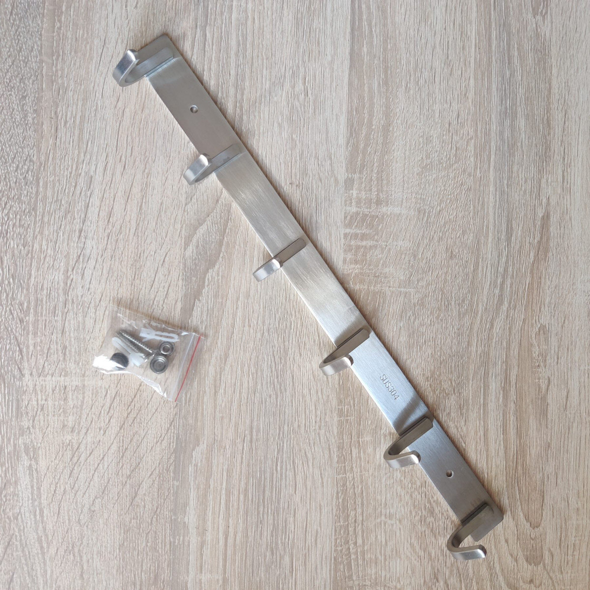 Вішалка із нержавіючої сталі. Виготовлена ​​з товстого матеріалу, не гнеться. Матова поверхня. Кріпиться шурупами.