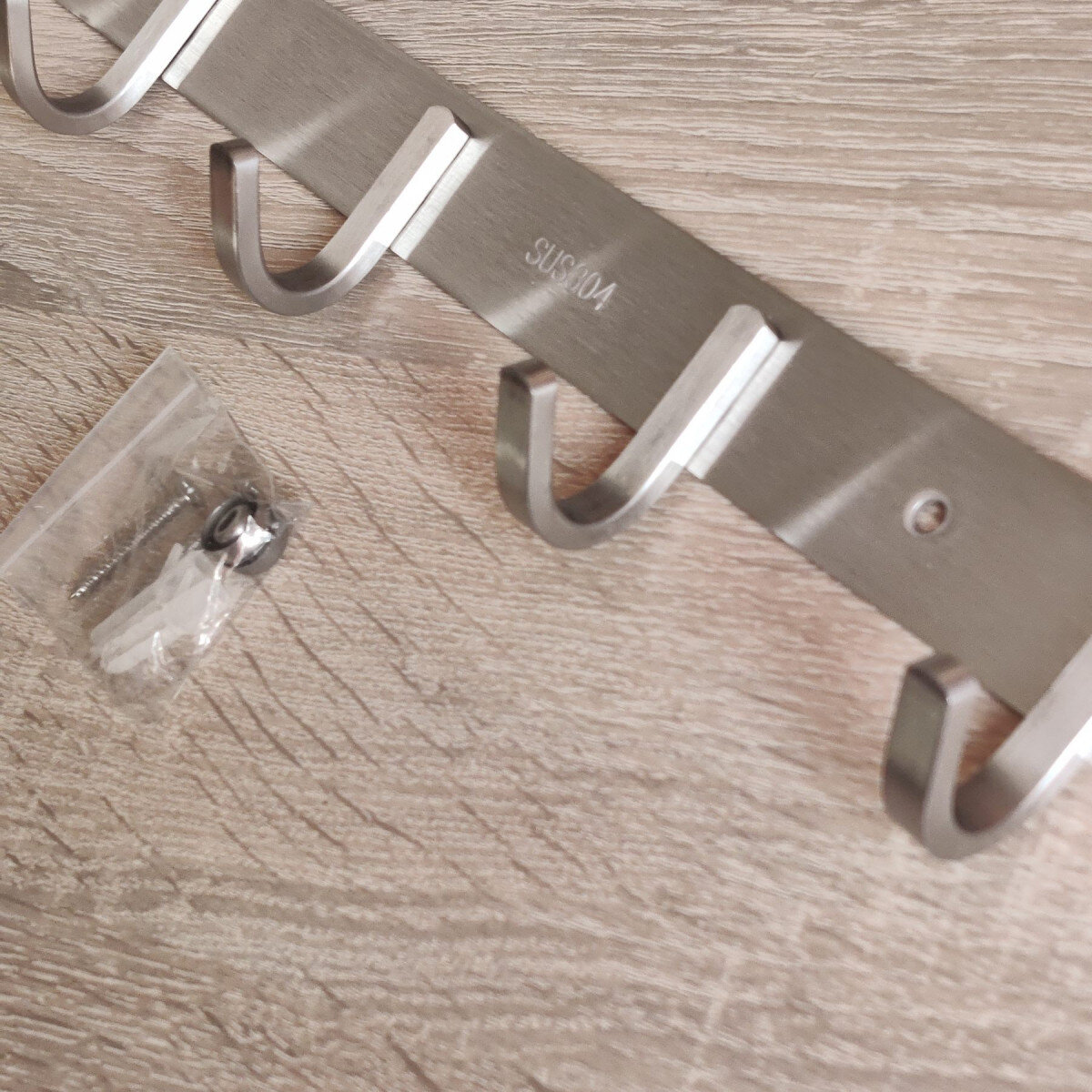 Вішалка із нержавіючої сталі. Виготовлена ​​з товстого матеріалу, не гнеться. Матова поверхня. Кріпиться шурупами.