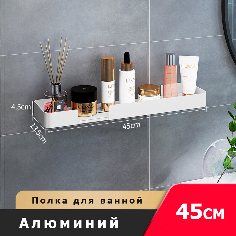 Полиця для ванної виготовлена ​​з алюмінію, стійка до дії вологи, не іржавіє. Полиця має сучасний дизайн (модерн, лофт), що гармонійно поєднується з більшістю дизайнерських рішень при облаштуванні ванної кімнати. Покриття – міцний ґрунт + фарба.