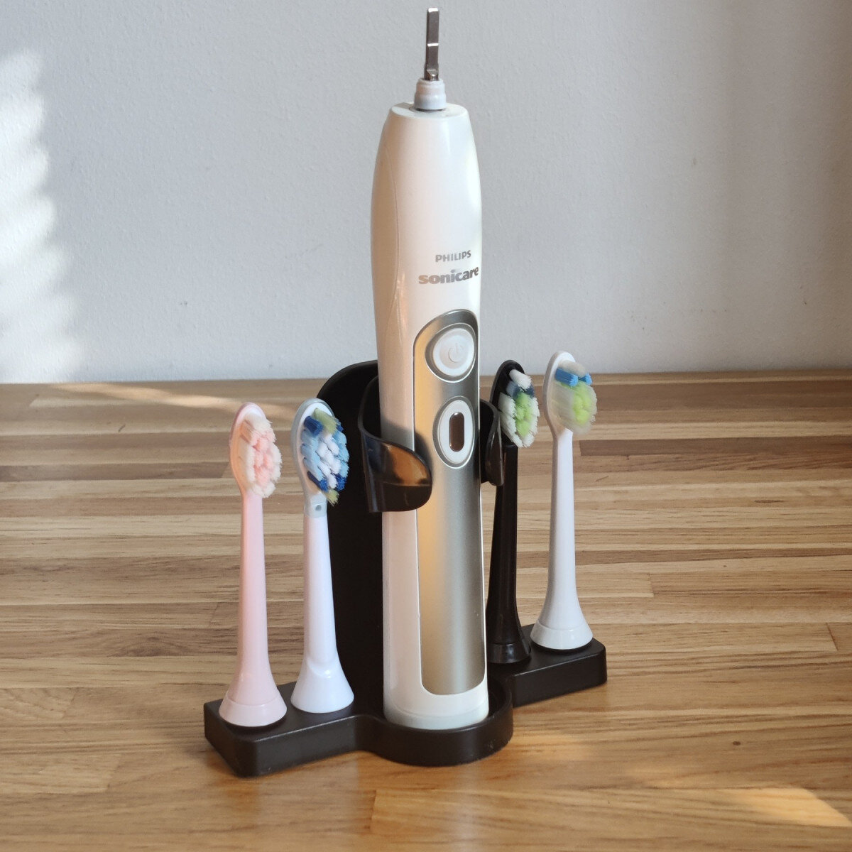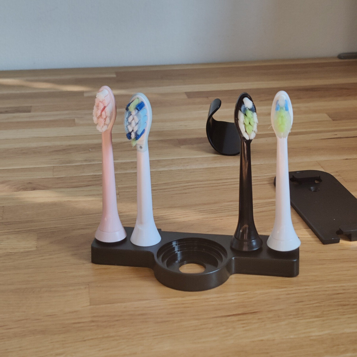 Підставка дозволяє надійно зафіксувати 4 змінні насадки та зубну щітку (за потреби). Розміри ідеально підігнані для 99% зубних щіток Philips .
