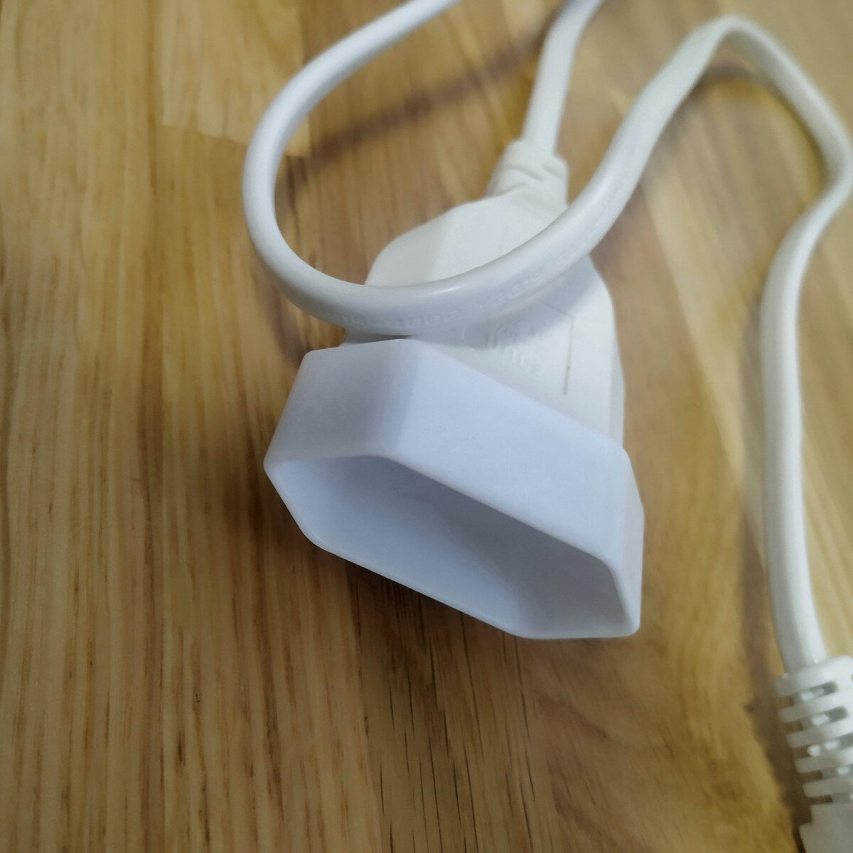 Особливість подовжувача E-JUN - компактність, вилка вигнута, роз'єм підключення (розетка) маленький.