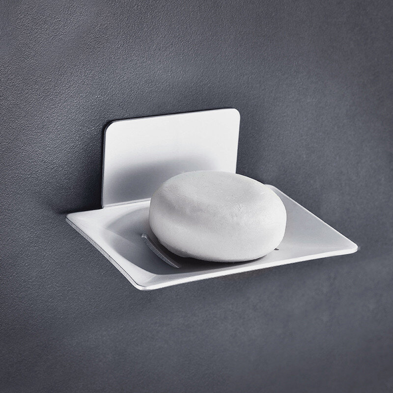 Мильниця з товстого алюмінію, жорстка та стильна. Виглядає набагато дорожче пластикових і мильниць з нержавіючої сталі. Не боїться корозії. Кріплення на стіну – клей.