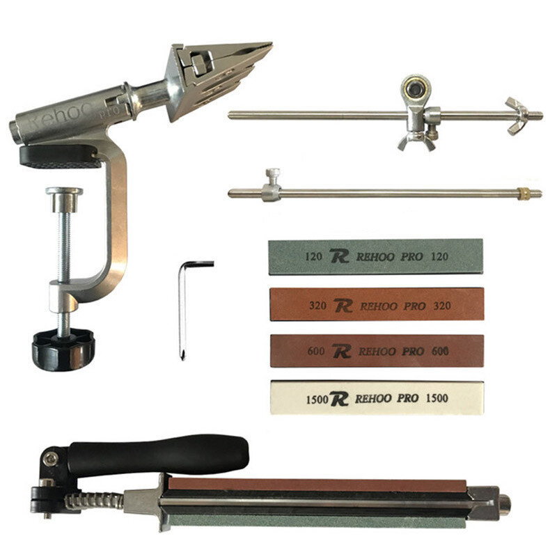 Верстат легко зібрати та розібрати за потребою. Поставляється в розібраному вигляді в комплекті з 4 абразивними бланками (120#320#600#1500#GRIT). Конструкція дозволяє використовувати як бланки, так і каміння без них.