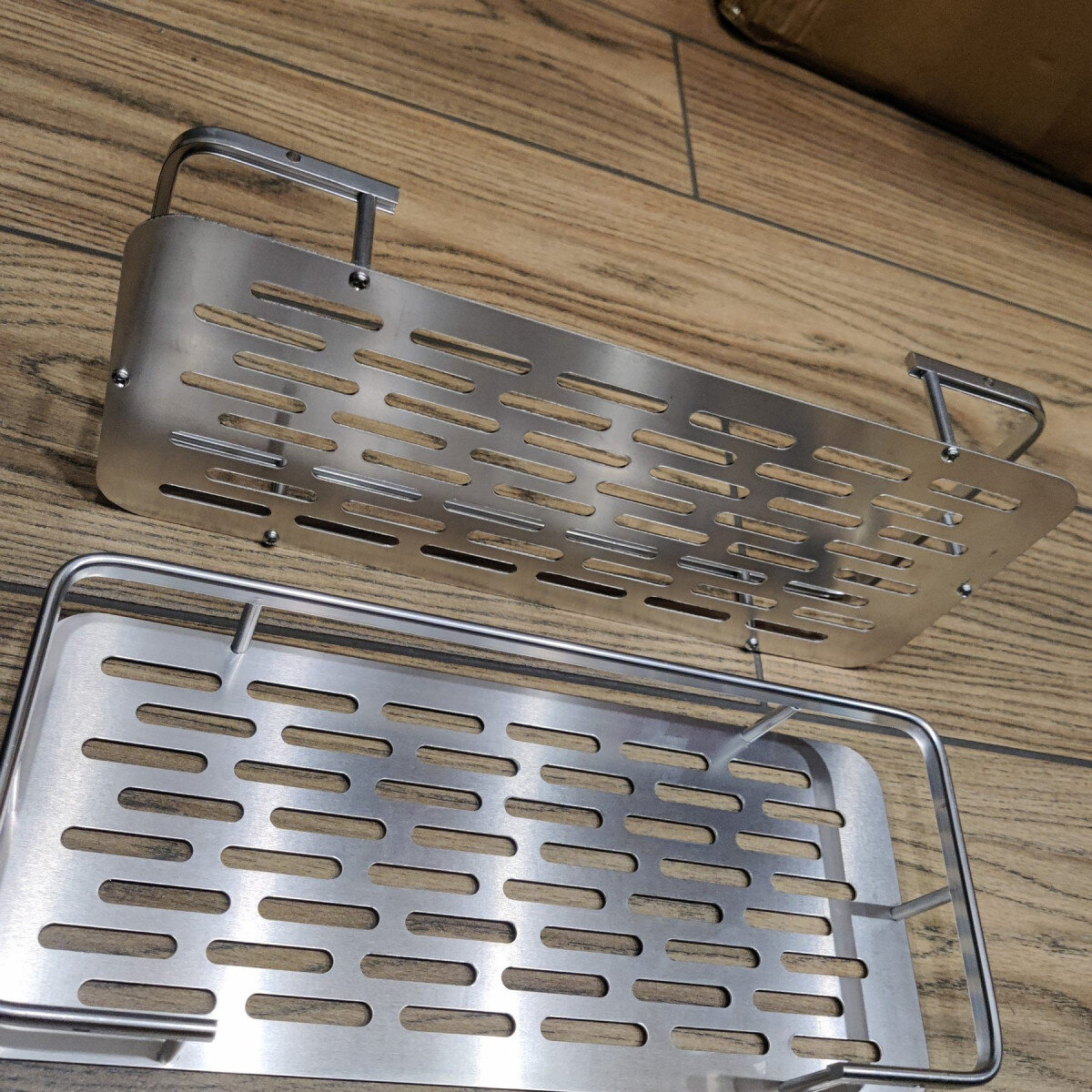 Надійна полиця для ванної кімнати. Полиця виготовлена ​​з алюмінію – міцна і не боїться корозії. Має стильний дизайн, сріблястий колір та гладку поверхню. Поставляється у частково розібраному вигляді, легко збирається.