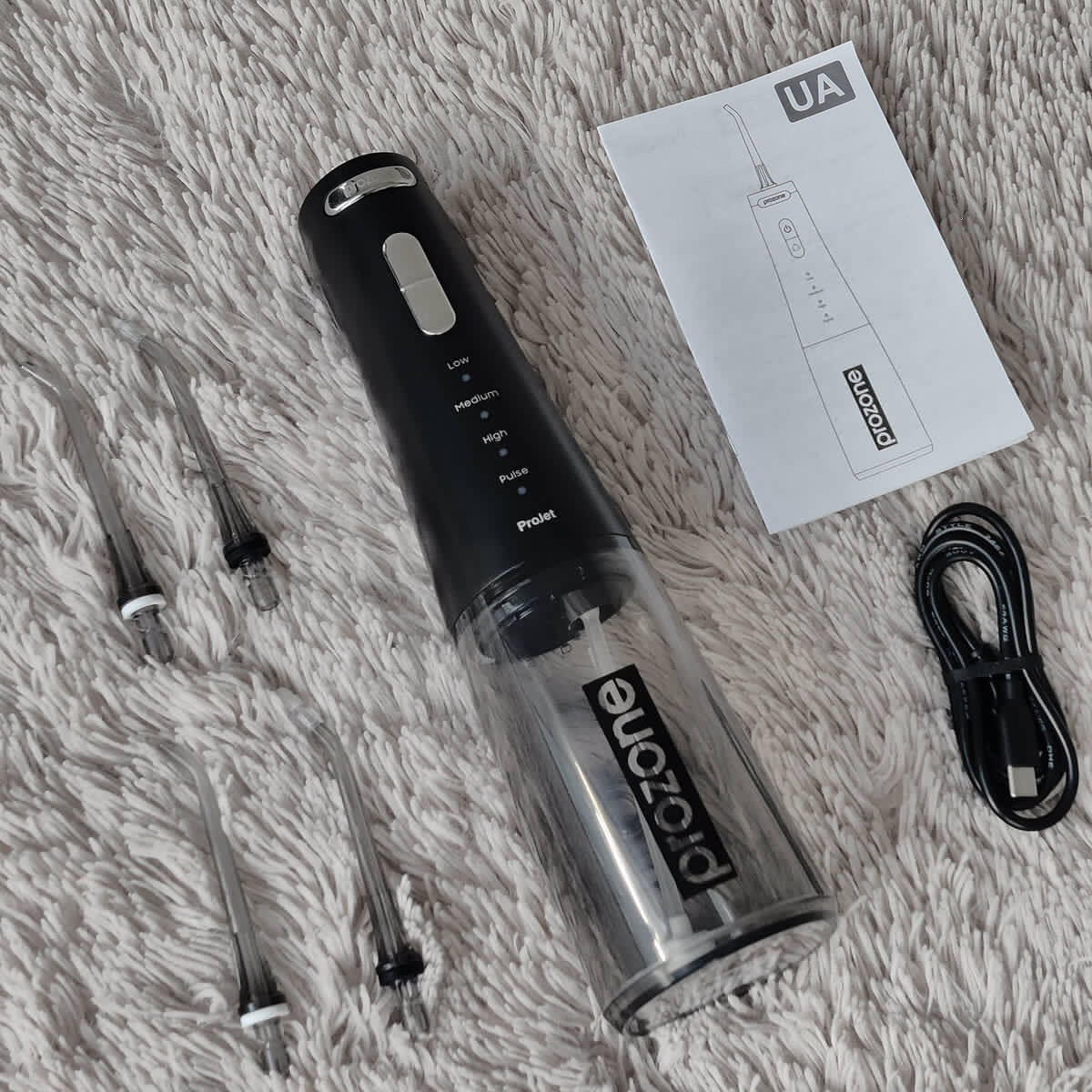 Головна перевага іригатора ProZone ProJet — висока інерція струменя. Це не просто тиск води, а правильна фізика потоку: кожен імпульс формує щільну, важку краплю, яка має достатню енергію, щоб проникати між зубами і яснами. Такий струмінь ефективно вибиває залишки їжі, очищає навіть вузькі проміжки і водночас не травмує слизову, оскільки не має ріжучого ефекту.
