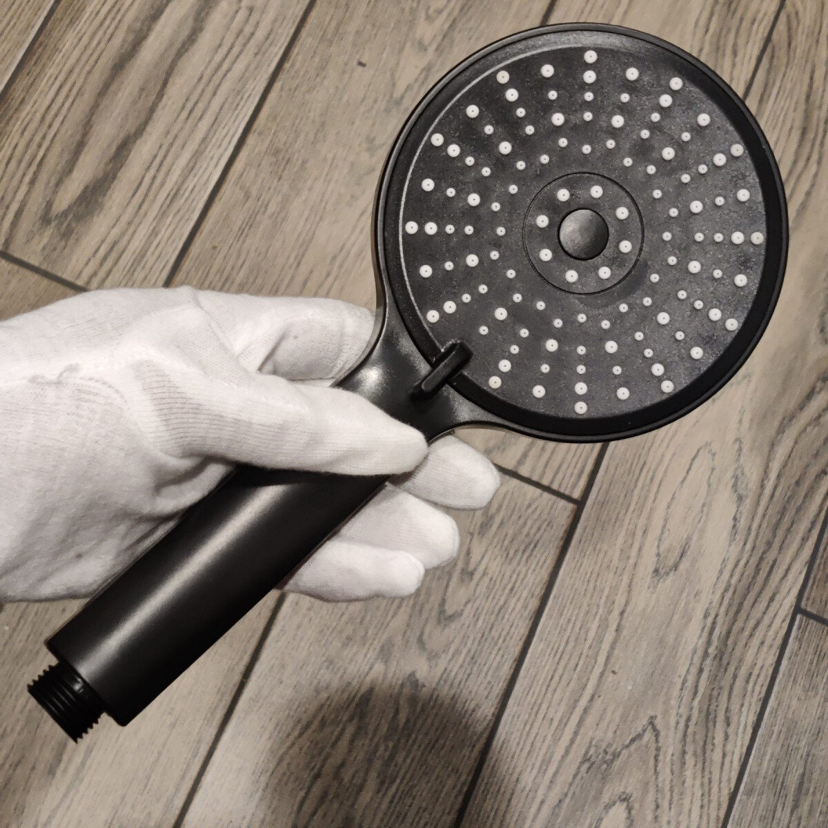 Доступна душова лійка чорного кольору. Якість обробки пластику – бюджетна, сам механізм – надійний.
