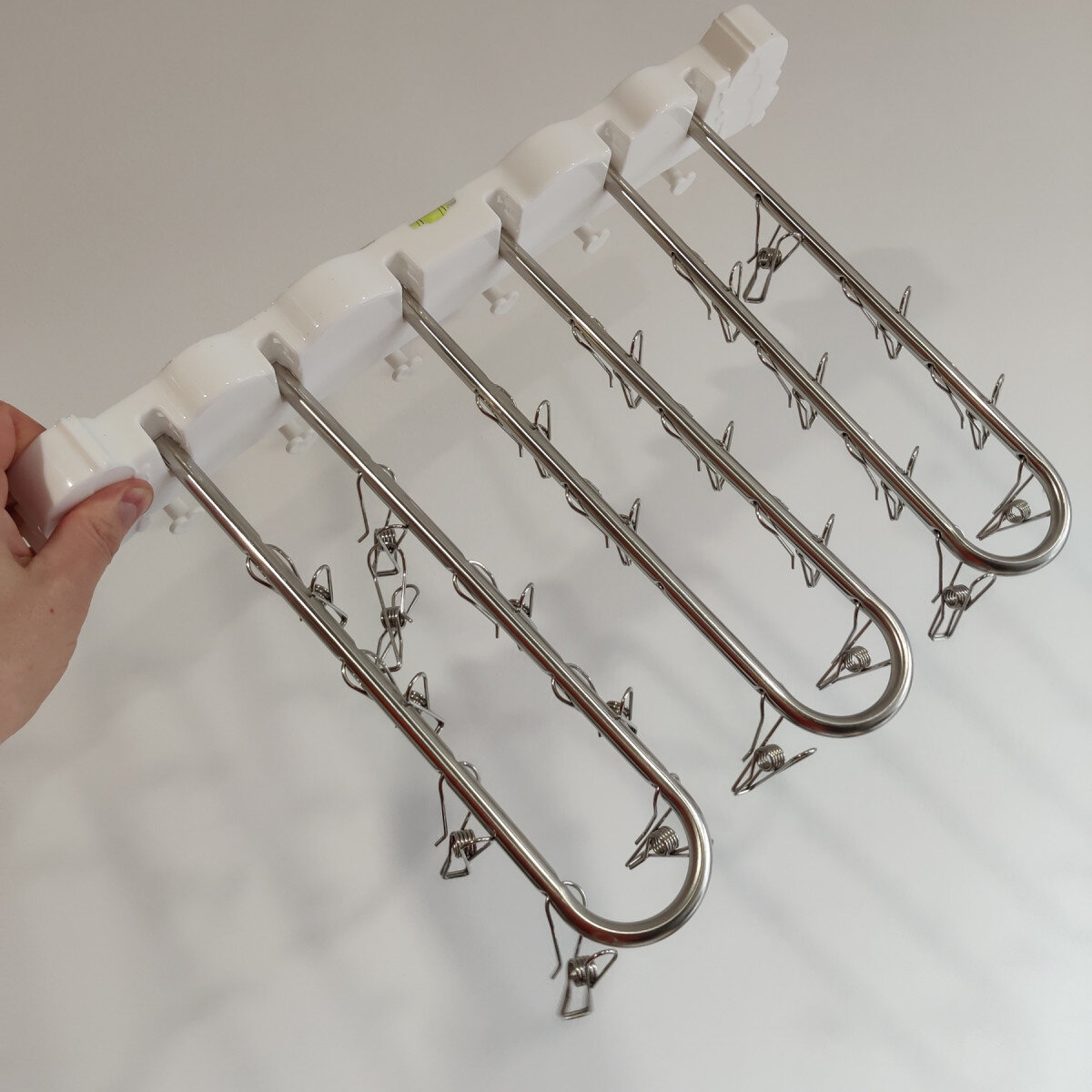 Відкидна вішалка для сушіння речей. Пластик + нержавіюча сталь.