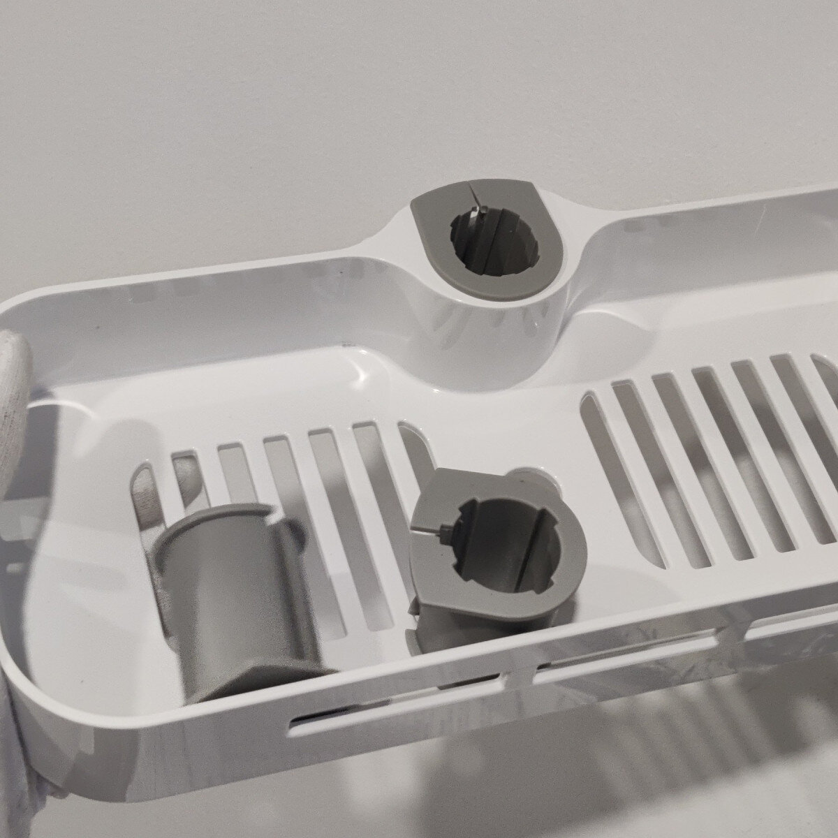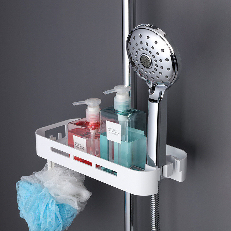 Полиця на душову стійку, виготовлена ​​із пластику. Має гачки та місце для душової лійки.