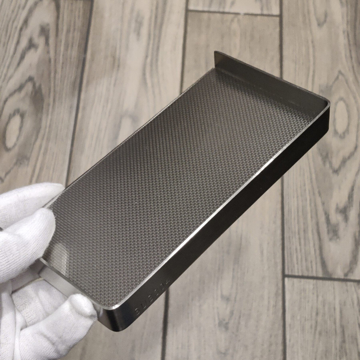 Полиця має сучасний дизайн, що гармонійно поєднується з більшістю дизайнерських рішень при облаштуванні ванної кімнати. Підійде для телефону чи дрібниць.