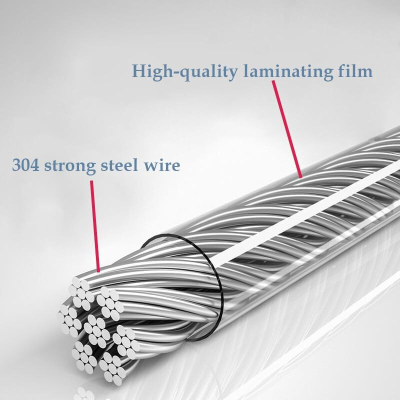 - Надійний трос: замість звичайної мотузки використовується міцний та надійний прогумований трос із нержавіючої сталі.