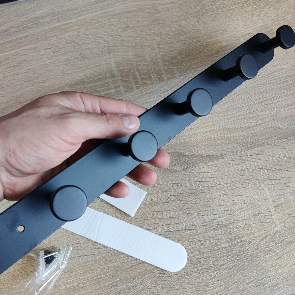 Вішалка із нержавіючої сталі. Кріпиться шурупами або двома стороннім скотчем.
