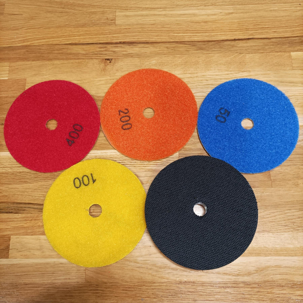 4 алмазні диски зернистістю 50, 100, 200 і 400 грит (по одному кожного виду)