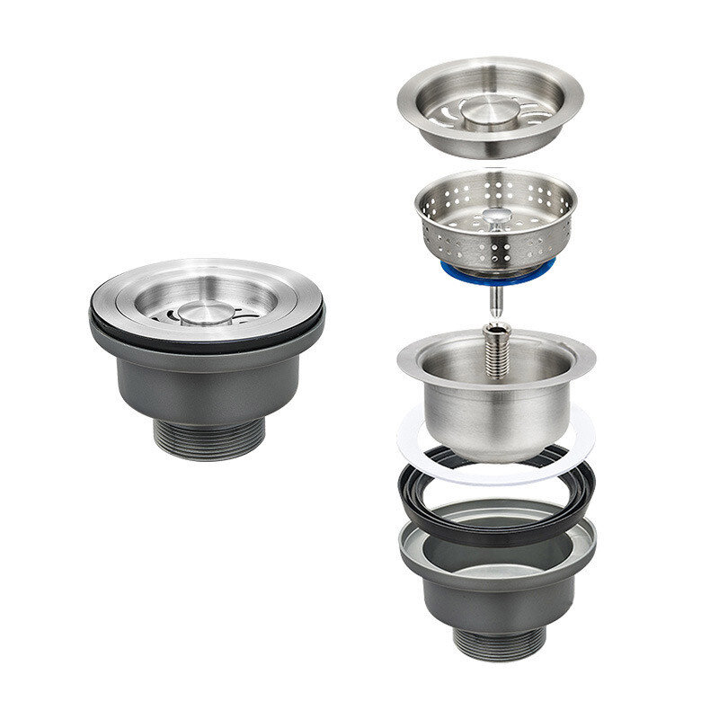 Донний клапан для мийки (випуск) обладнаний знімним кошиком для збирання великих частинок та герметичною кришкою, виготовлений з нержавіючої сталі. Це зручне сучасне рішення для кухонного миття, всі залишки їжі, що потрапила в мийку, потрапляють в кошик уловлювач, який легко витягується для очищення.