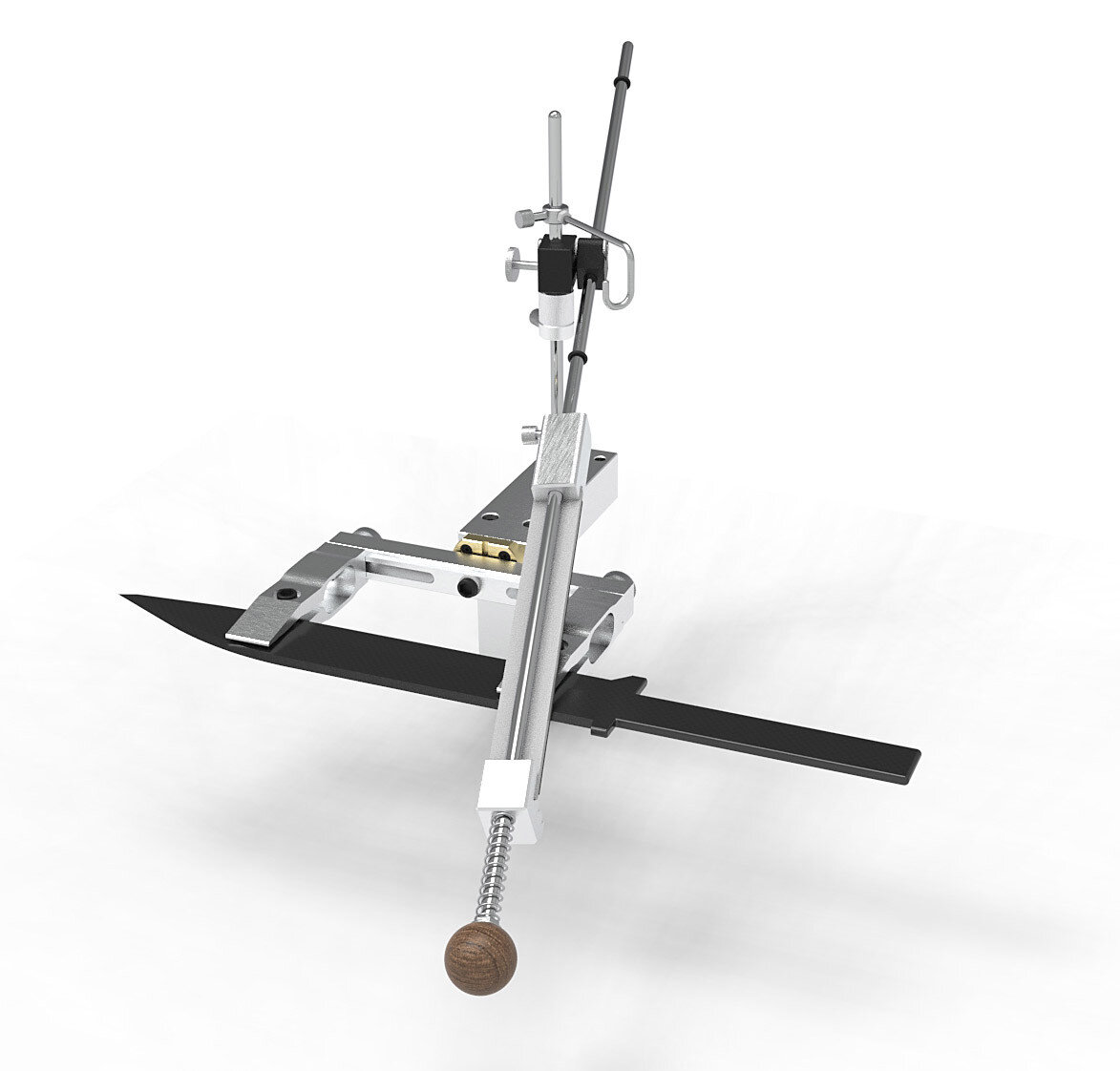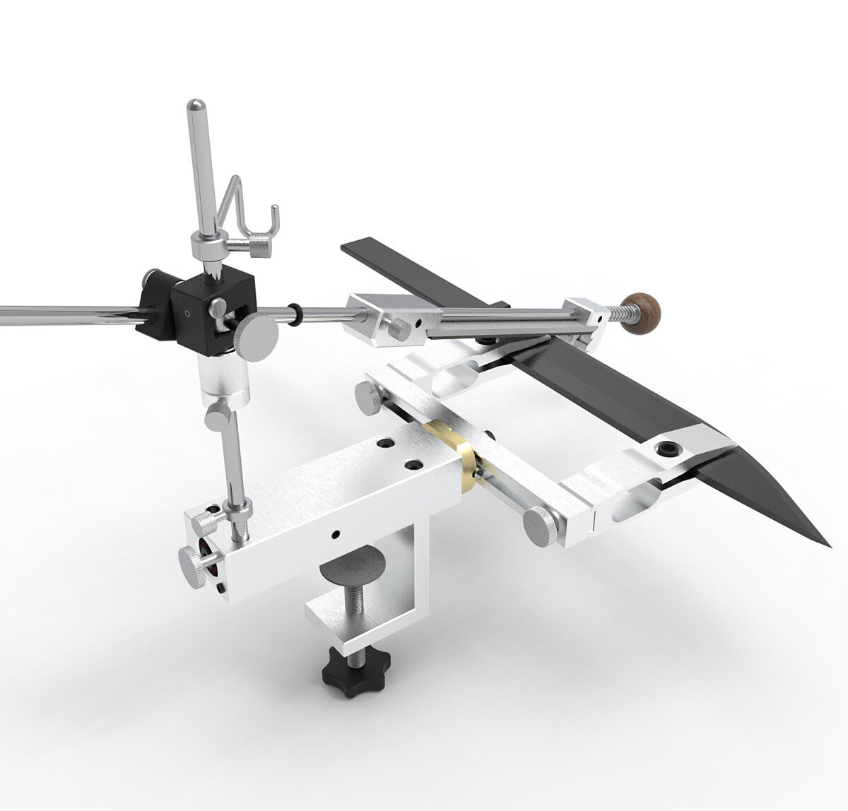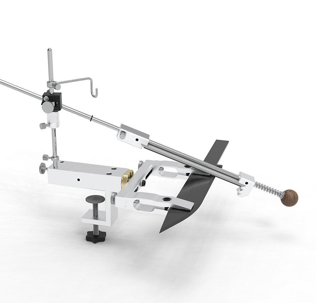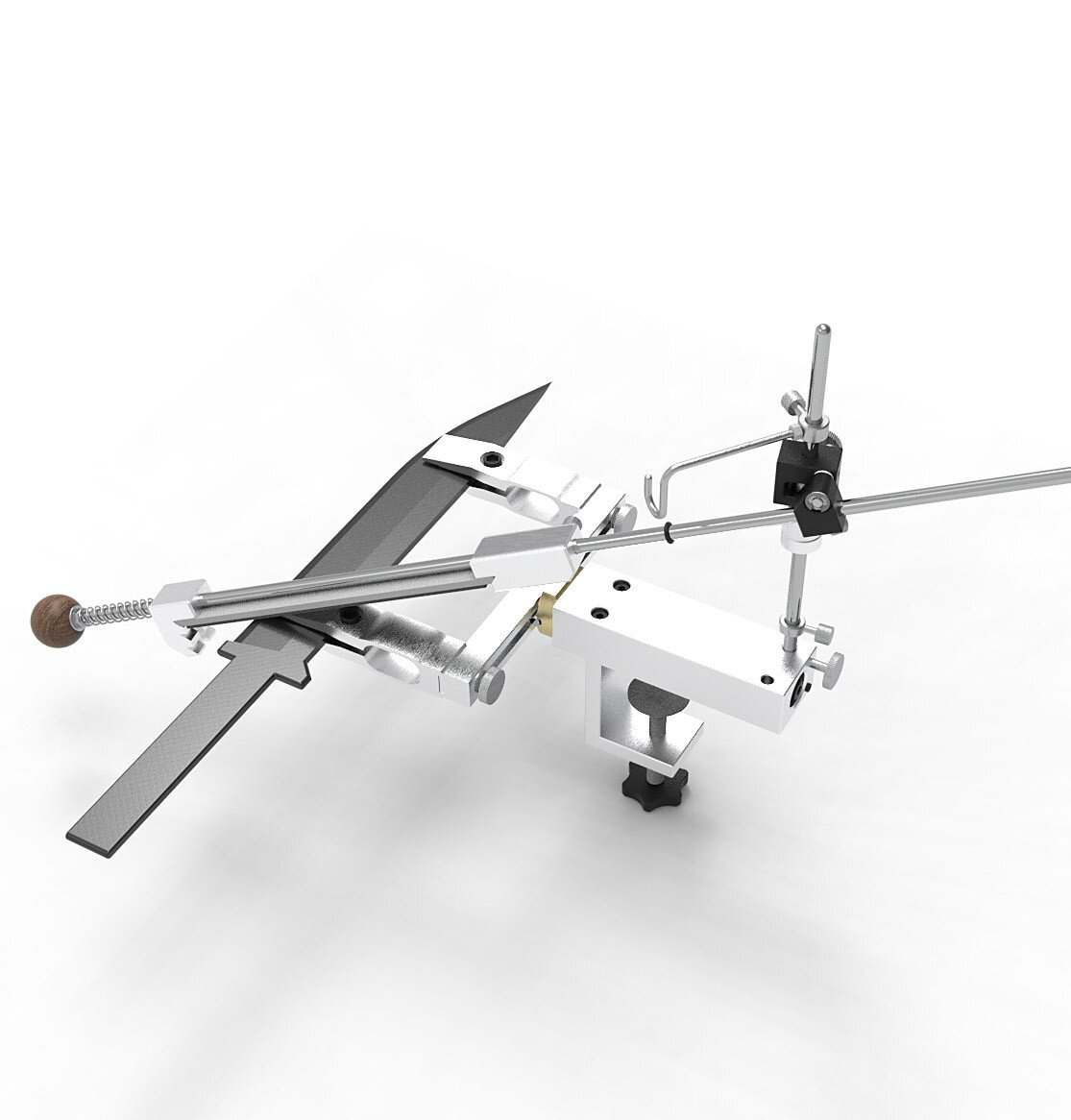 Професійний точильний станок для точної заточки ножів з жорсткою фіксацією клинка, поворотним механізмом та плавним ходом направляючого штока. Конструкція розроблена для стабільної роботи, високої повторюваності кута та комфортної заточки як прямих, так і складних за формою клинків.