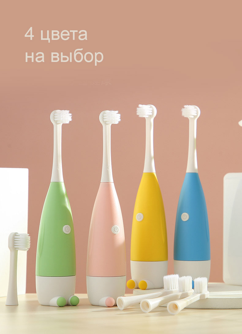 У комплекті йдуть 2 змінні насадки зі спеціальною щетиною для молочних зубів, яка тонша на кінцях. Читка зубів буде якісною і безпечною.