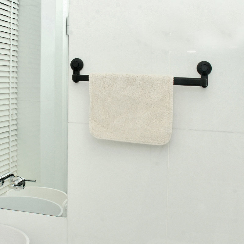 Вішалка для рушників у ванну із вакуумним кріпленням на стіну. Кріплення виготовлене з пластику, штанга для рушників - з алюмінію.