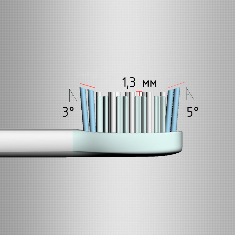 | Особенности | 2 сменные насадки Unique Whitening Щетина Tynex DuPont (США) Стандартный размер Для ежедневной чистки Y-образная боковина Рекомендуется менять каждые три месяца |