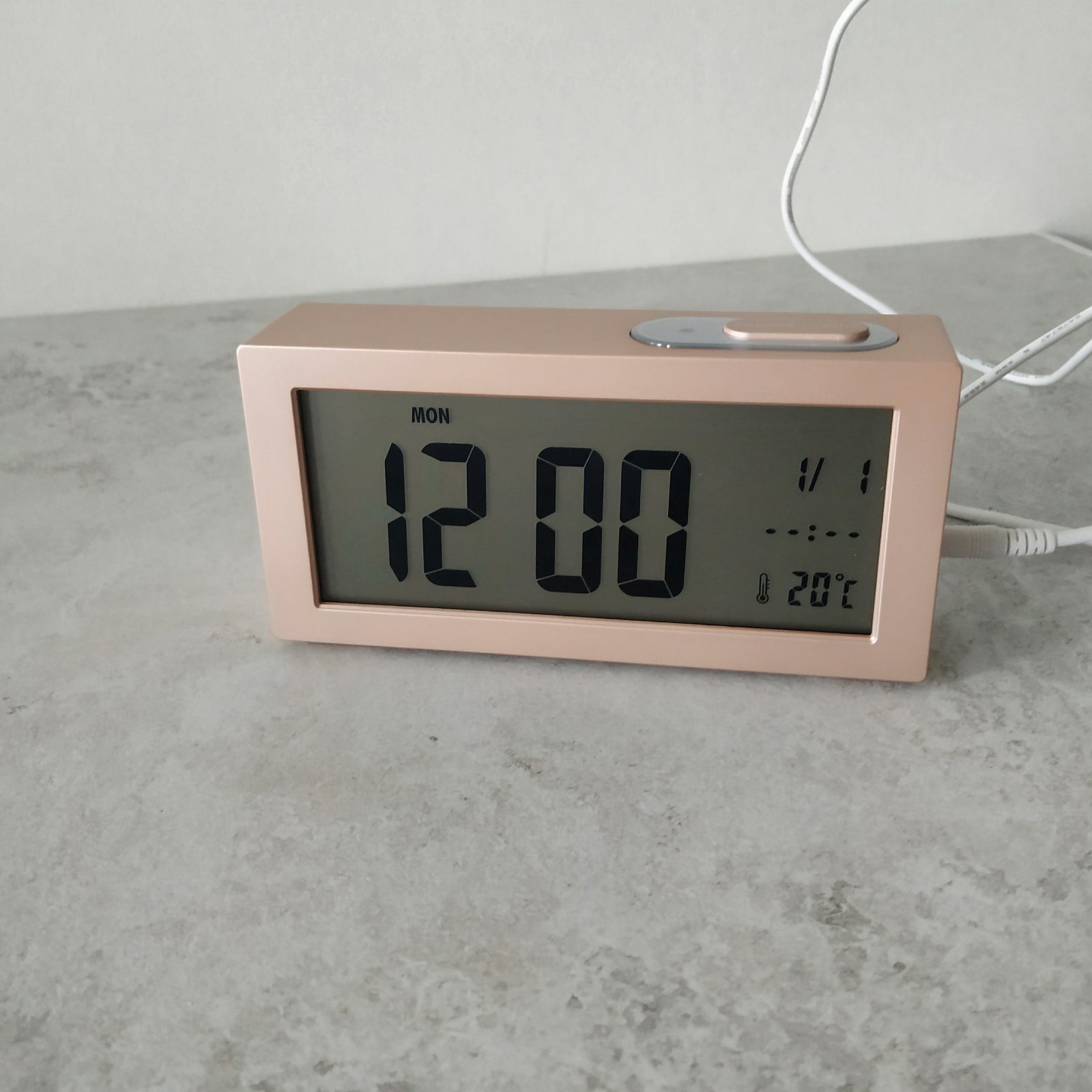 - Годинник показує час, дату, температуру, день тижня, функція нічника, є функція повтору сигналу