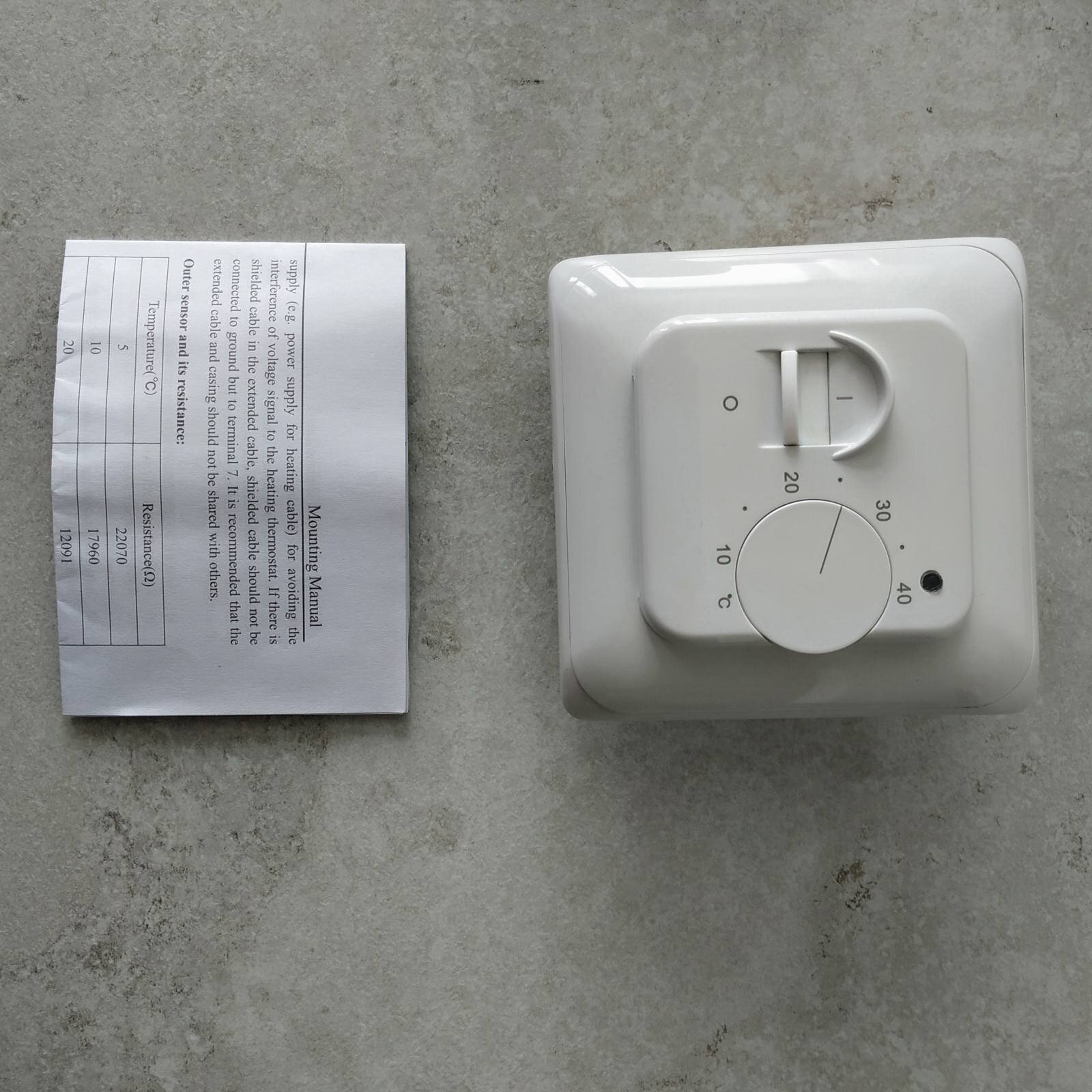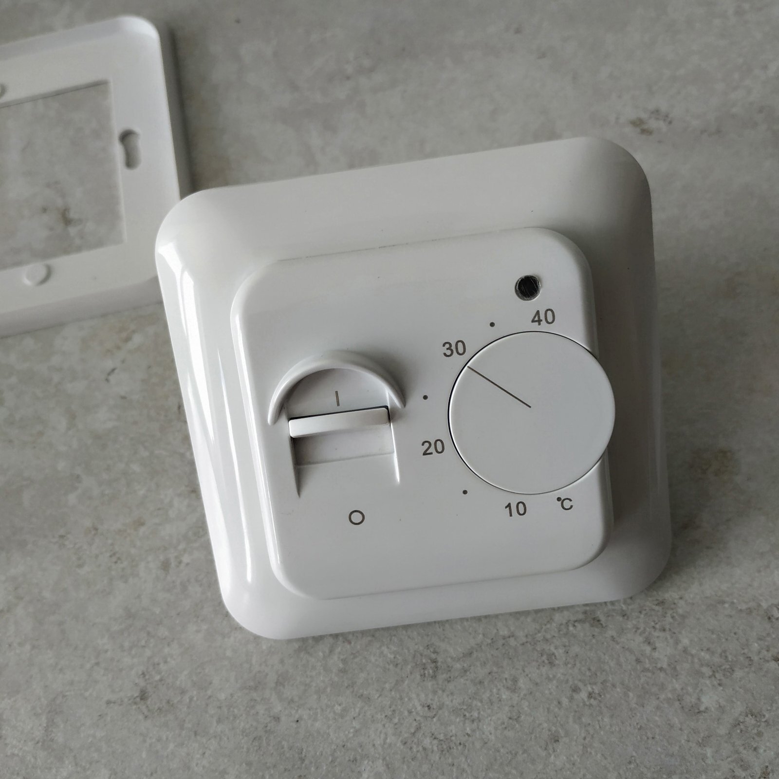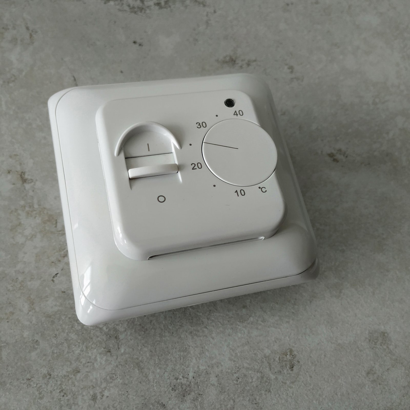 Механический терморегулятор для теплого пола используется для управления электрическим теплым полом (мат, кабель, инфракрасная пленка) и прочими системами электроотопления. Регулировка температуры происходит путем поворота колесика на требуемое значение температуры.