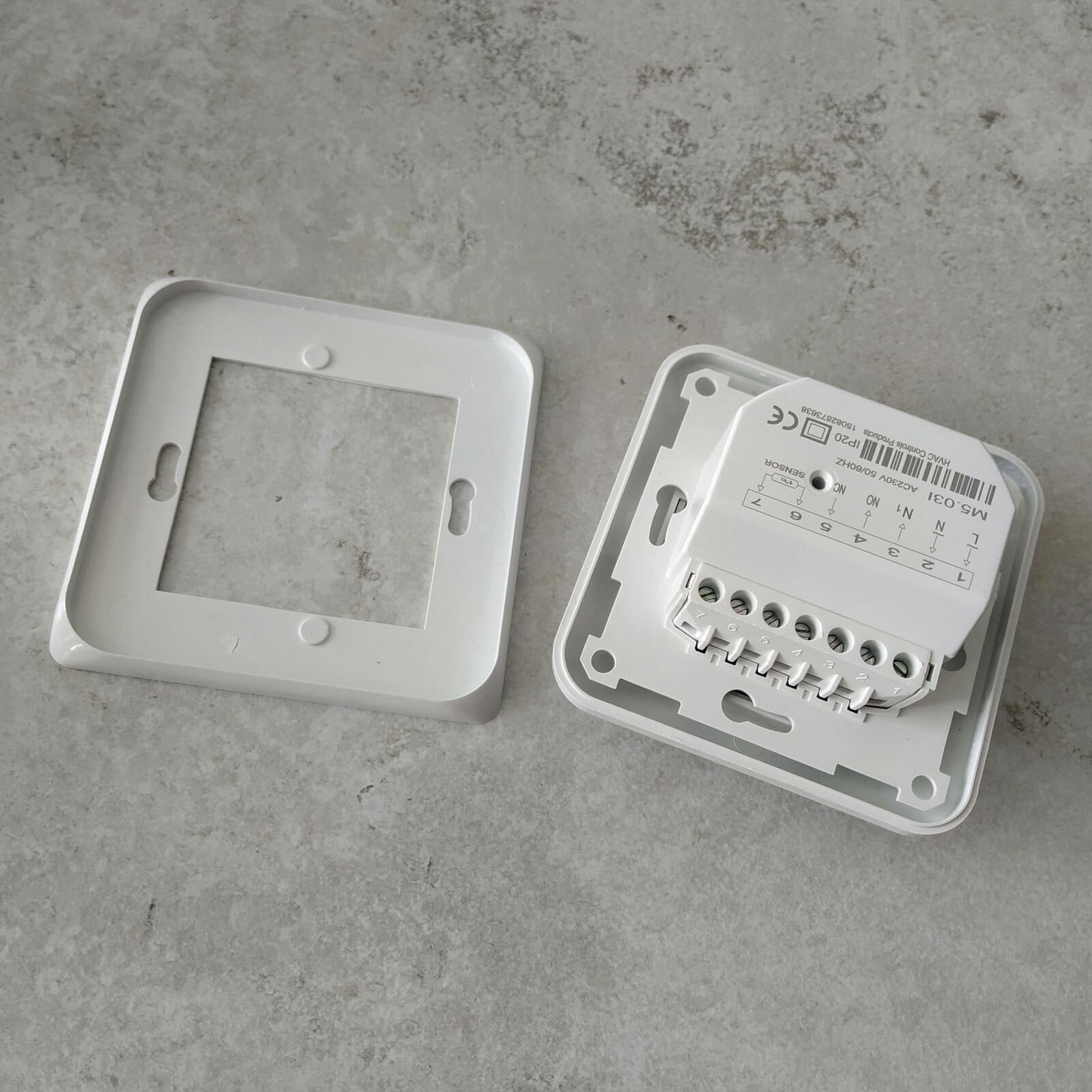 Монтаж терморегулятора прост и производится в стандартный подрозетник. В комплекте имеется инструкция/схема на английском языке.