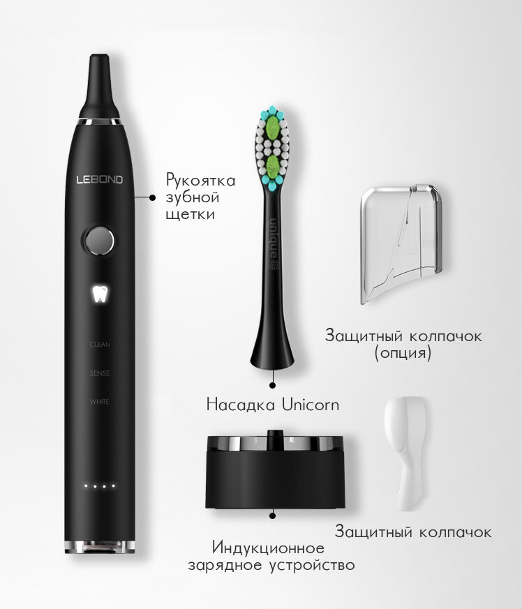 Мінімальна комплектація звукової зубної щітки Lebond IN дозволила зробити преміальний виріб доступним для максимальної кількості споживачів.