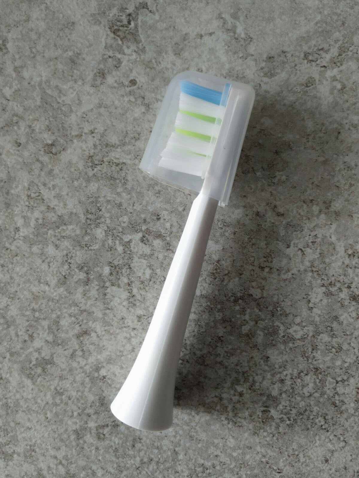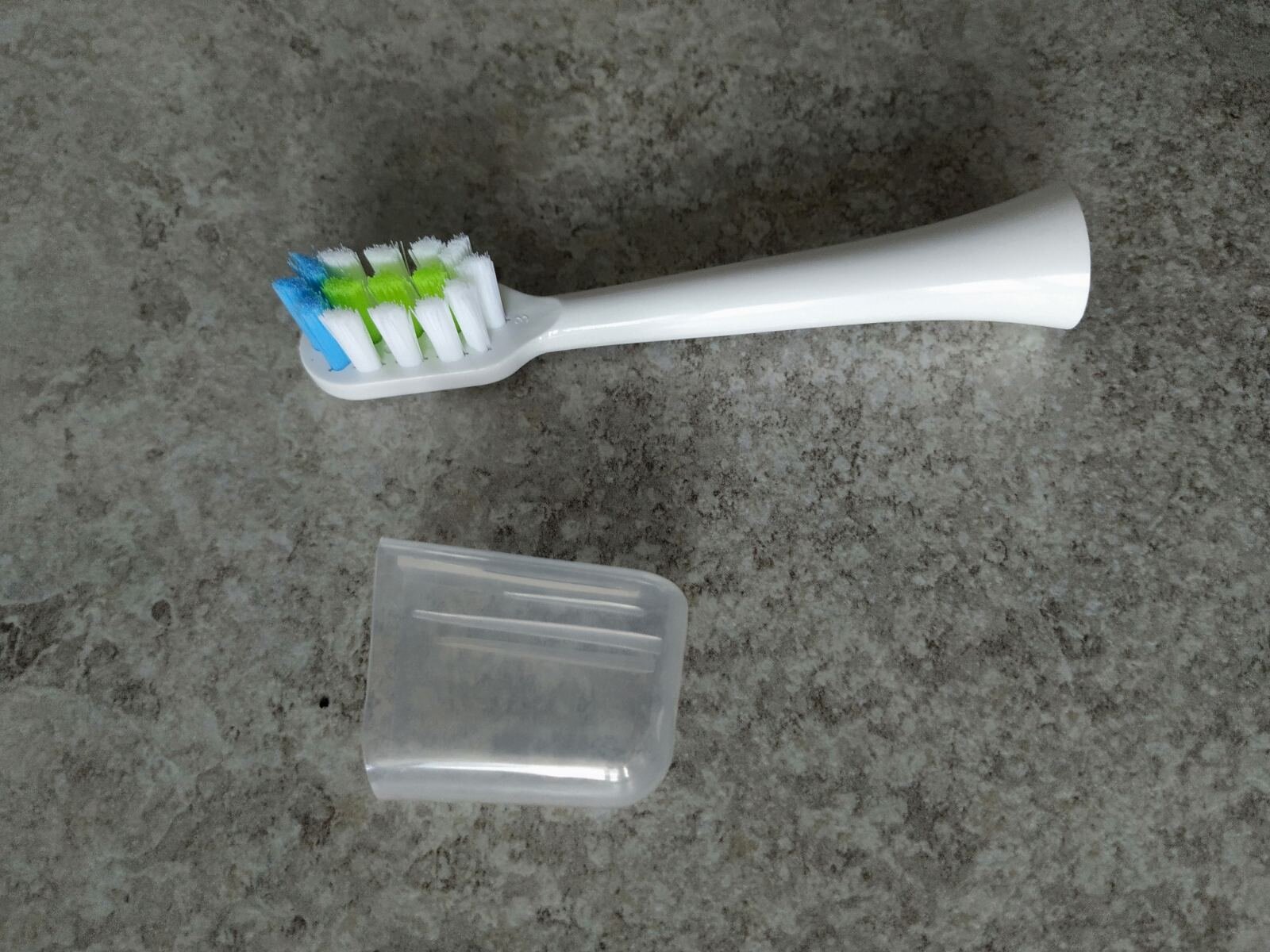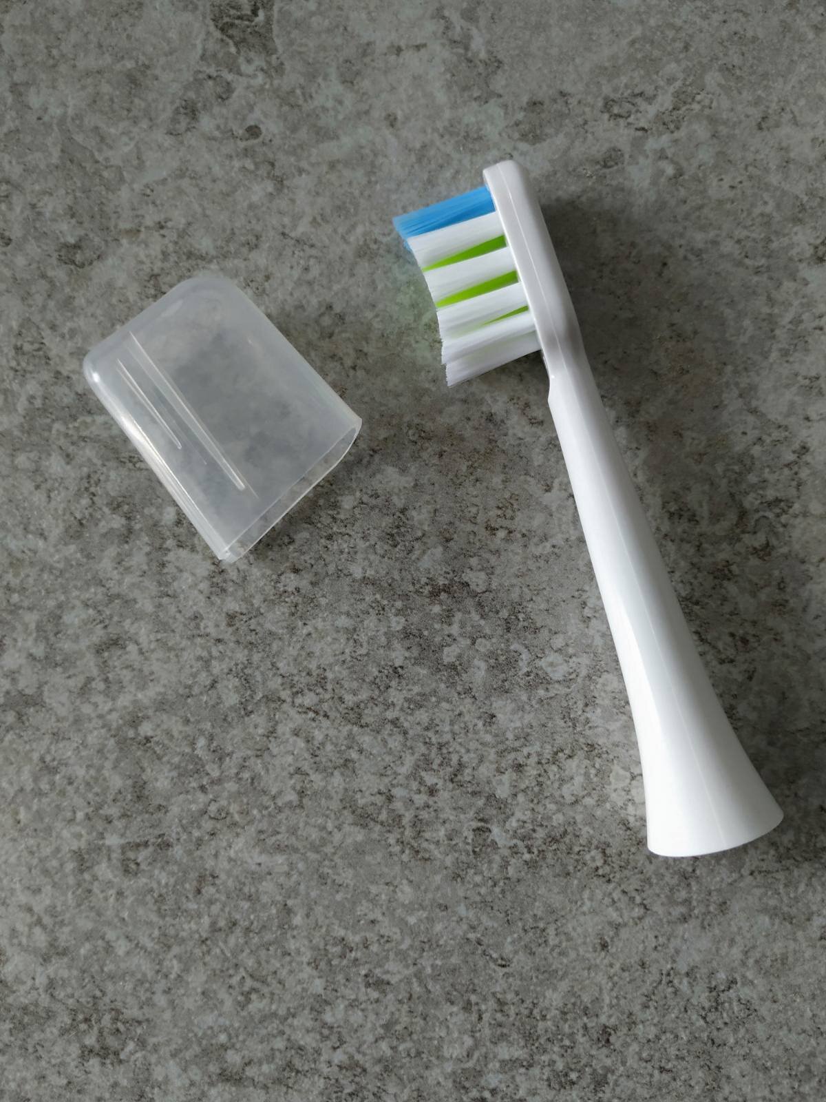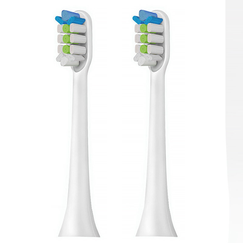 Сменные насадки имеют прямоугольную форму чистящей головки с плотными пучками щетины по краям. Данный подход позволяет улучшить качество чистки зубов, особенно в зубных щетках 3-го поколения.