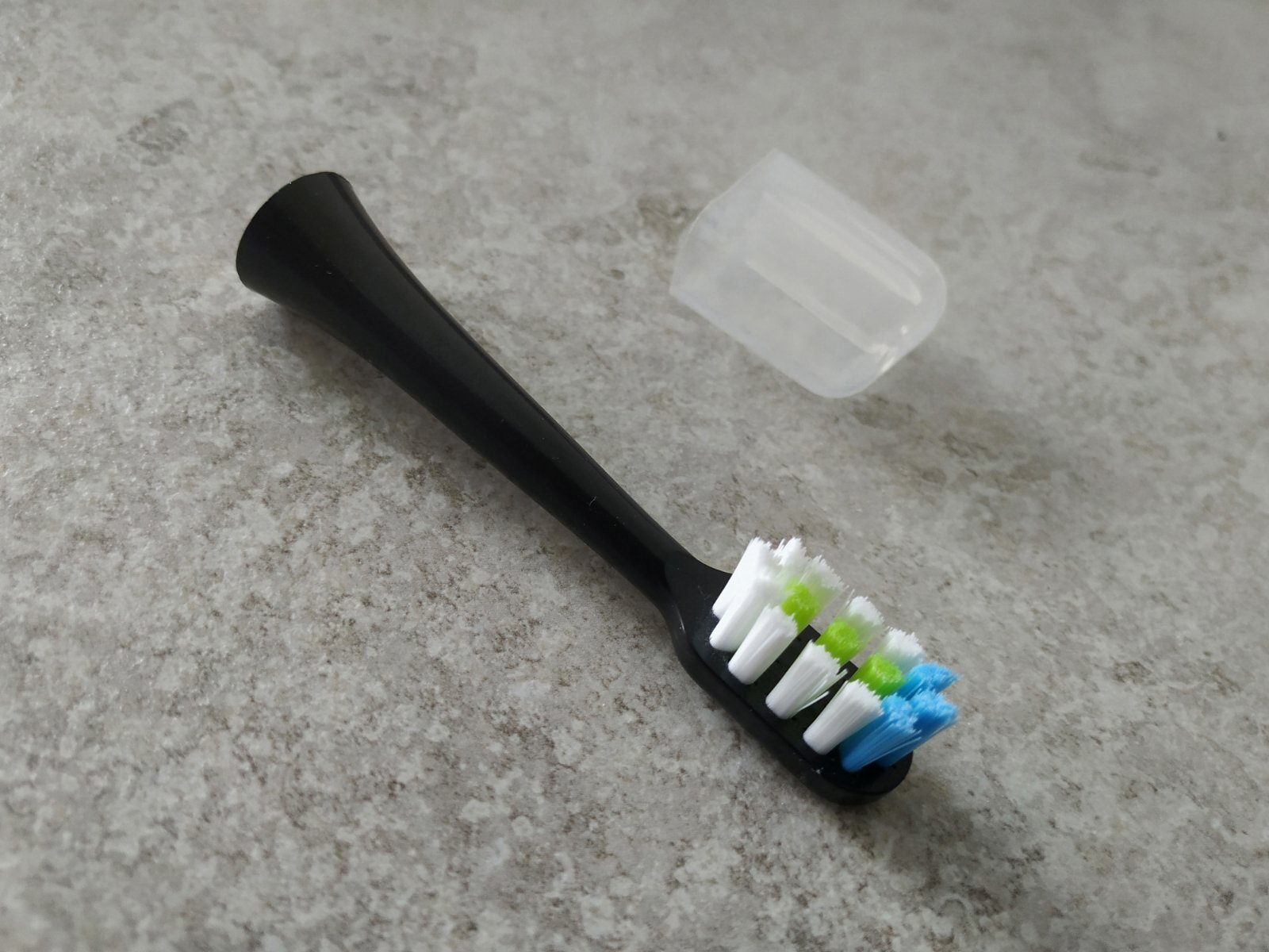 - Змінні голівки, завдяки щільнішим крайнім пучкам, ще ефективніше видаляють зубний наліт при мінімальному збільшенні навантаження на зубний ряд.