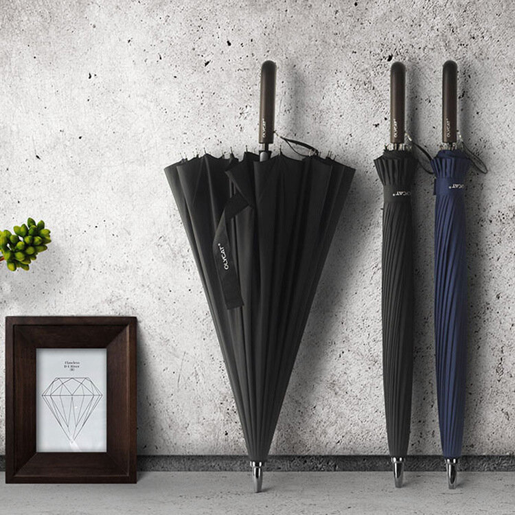 Стильний зонт-тростина з дерев'яною ручкою, ручний механізм розкриття, посилена конструкція проти вітру.