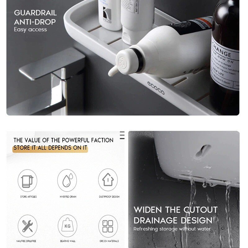 Знизу та зверху полиці є отвори для стікання води, що забезпечить сухість Ваших предметів, навіть якщо розмістити її біля вологостійкого місця.