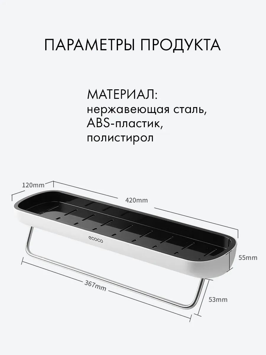 Настінна полиця із пластику ECOCO міцна і не боїться вологи. Стильний сучасний дизайн прикрасить будь-який інтер'єр. Полиця може бути використана також на кухні та в інших кімнатах.