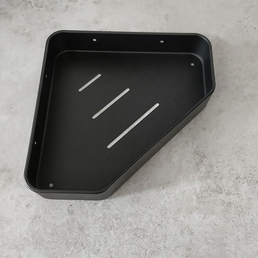 Полиця для ванної виготовлена ​​з алюмінію методом пресування , відсутні будь-які стики, болтові та зварювальні з'єднання - 100% монолітна конструкція . Полиця має сучасний дизайн (модерн, лофт), що гармонійно поєднується з більшістю дизайнерських рішень при облаштуванні ванної кімнати.