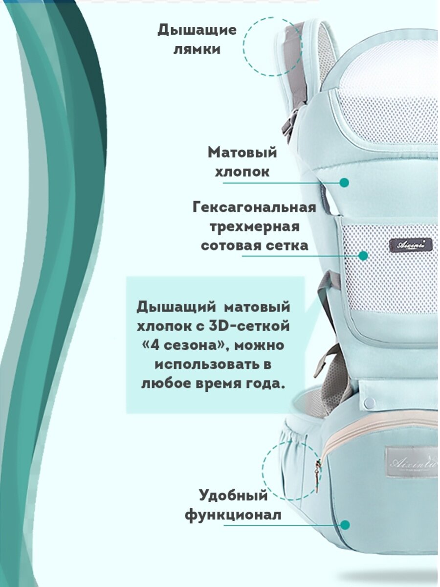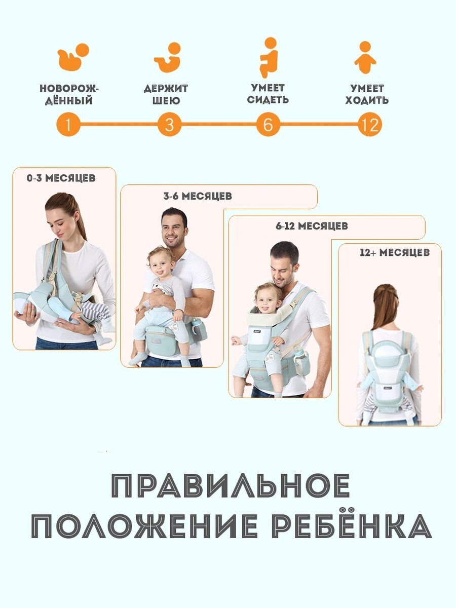 Ергономічний, м'який та зручний 4 положення для перенесення дитини: для немовлят, обличчям до батька, обличчям до світу, за спиною батька.