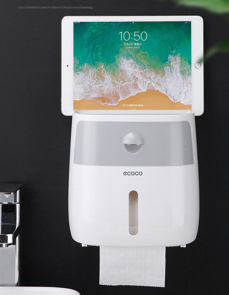 Современный и удобный клеящийся держатель, изготовленный из ударопрочного ABS пластика белого цвета с серой вставкой. Аксессуар имеет отделение для рулонной туалетной бумаги, а также выдвижной ящик и слот для гаджетов. Держатель также можно заправлять салфетками. Аксессуар не боится воды и защищает ваши вещи от влаги. Выдерживает вес до 2.5 килограммов и крепится на ровную гладкую поверхность с помощью самоклеющейся пластины, которая идет в комплекте. Вам не придется сверлить стены. Высота держателя - 210 мм, глубина - 130 мм, ширина - 205 мм.