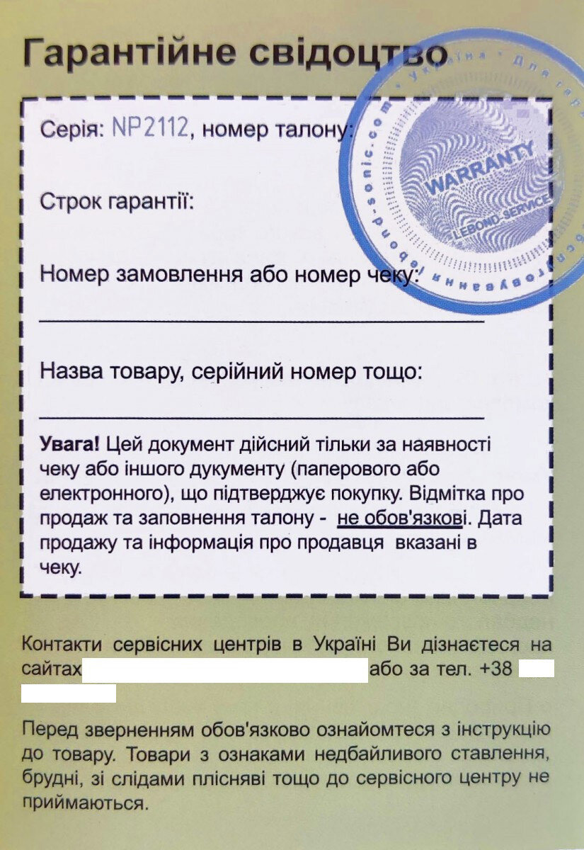Гарантія на Nicefeel FC169 - 12 місяців (гарантійний талон).